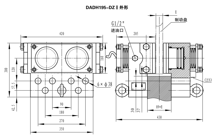 制動(dòng)力=1350 x壓力(壓力≦200bar)